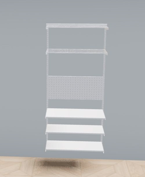 В комплект входят несущие рельсы и навесные направляющие, полки, штанги, аксессуары, крепежные элементы. Можно докупить множество дополнительных компонентов для гардеробной системы.