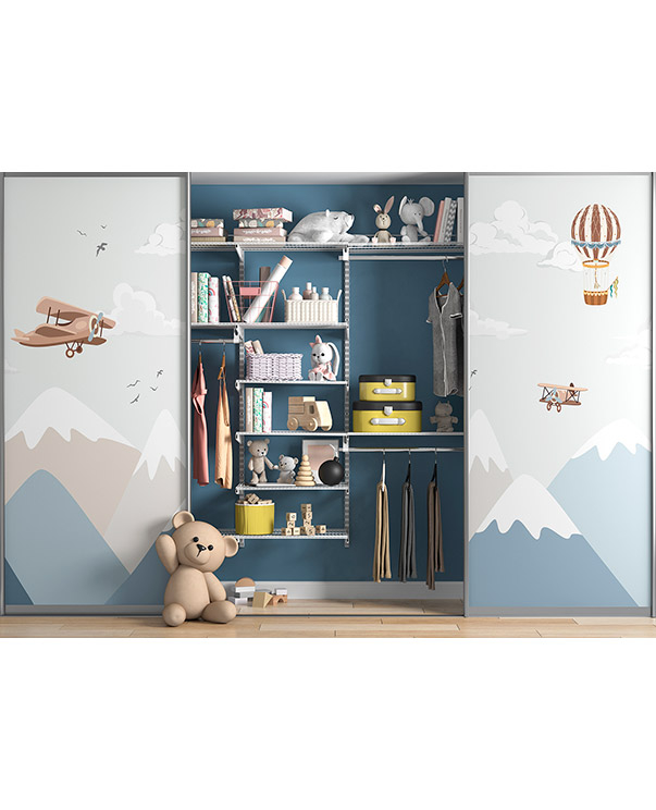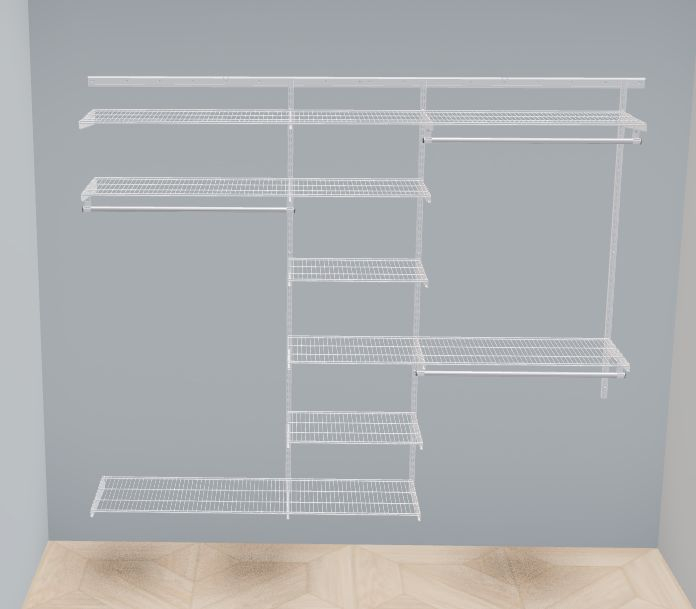 В комплект входят несущие рельсы и навесные направляющие, полки, штанги, аксессуары, крепежные элементы. Можно докупить множество дополнительных компонентов для гардеробной системы.