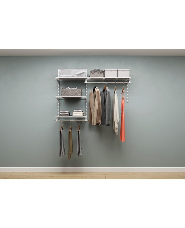 В комплект входят несущие рельсы и навесные направляющие, полки, штанги, аксессуары, крепежные элементы. Можно докупить множество дополнительных компонентов для гардеробной системы.