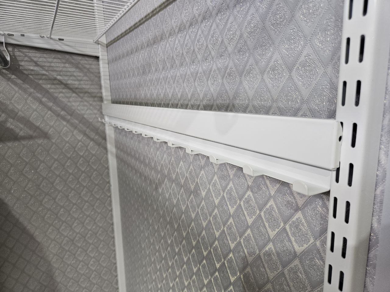 Секционная панель с крючками устанавливается между стоек, используется в прихожих и гардеробных комнатах, удобна для хранения верхней одежды, шарфов, головных уборов и т.д.