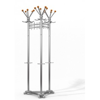 Удобная и вместительная вешалка позволяет компактно разместить большое количество одежды на трех пятирожковых головах и трех решетках, вертикальные штыри которых предназначены для подвешивания как одежды, так и сумок.