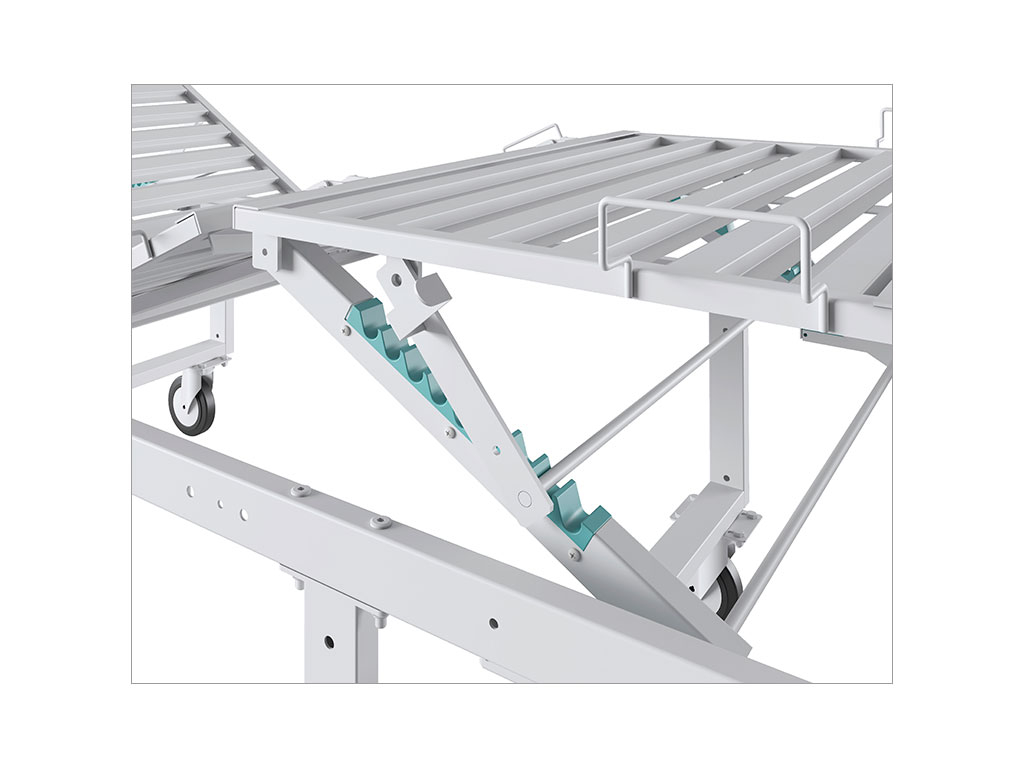 - трехсекционное ложе с механической регулировкой секций (спинной, ножной и тазобедренной), каркас изготовлен из профильной трубы прямоугольного сечения 50х25мм , покрыта эпоксидно-порошковой краской;