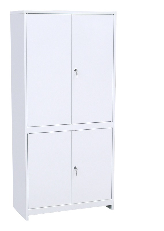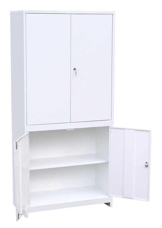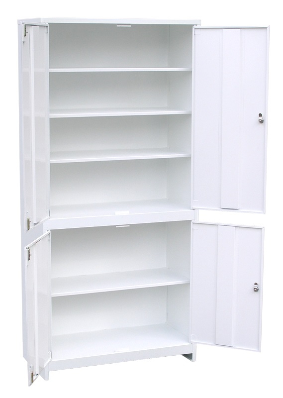 Шкаф медицинский двухстворчатый окрашен порошковой краской белого цвета, которая помогает защитить его от систематической обработки поверхностей шкафа моющими и дезинфицирующими средствами.