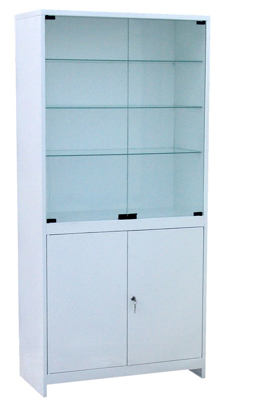 Две металлические двери и одна стационарная металлическая полка - в нижнем отделении.