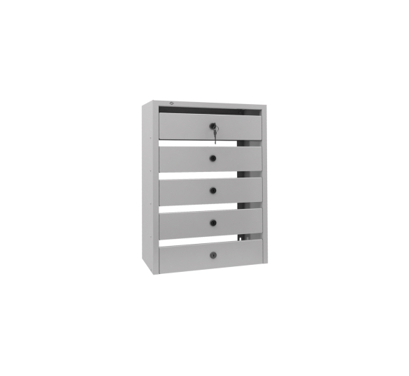 Компактный 5-х секционный почтовый ящик для узких подъездов серии «Оптима Компакт» без задней стенки. Корреспонденция располагается в секции горизонтально.