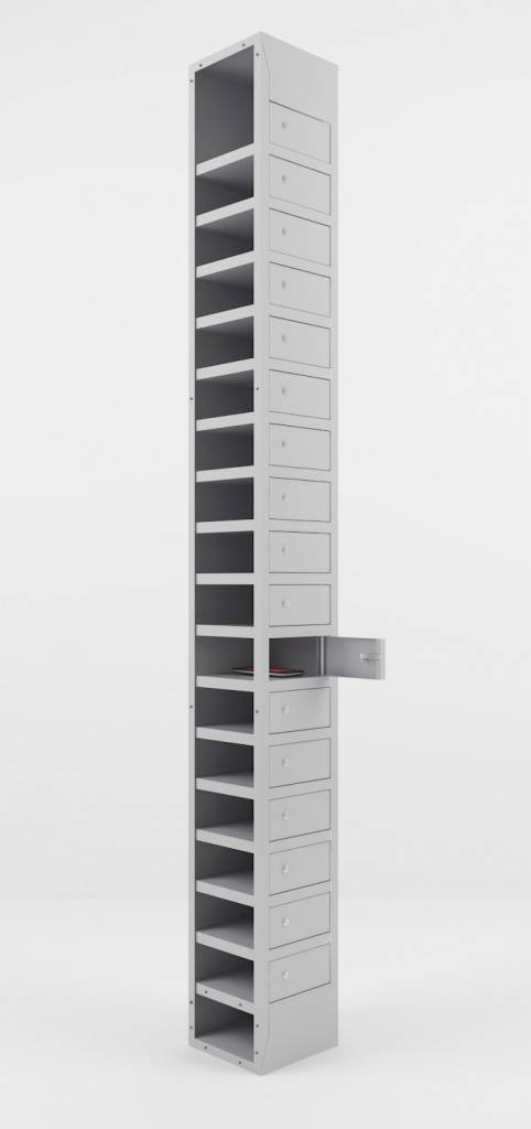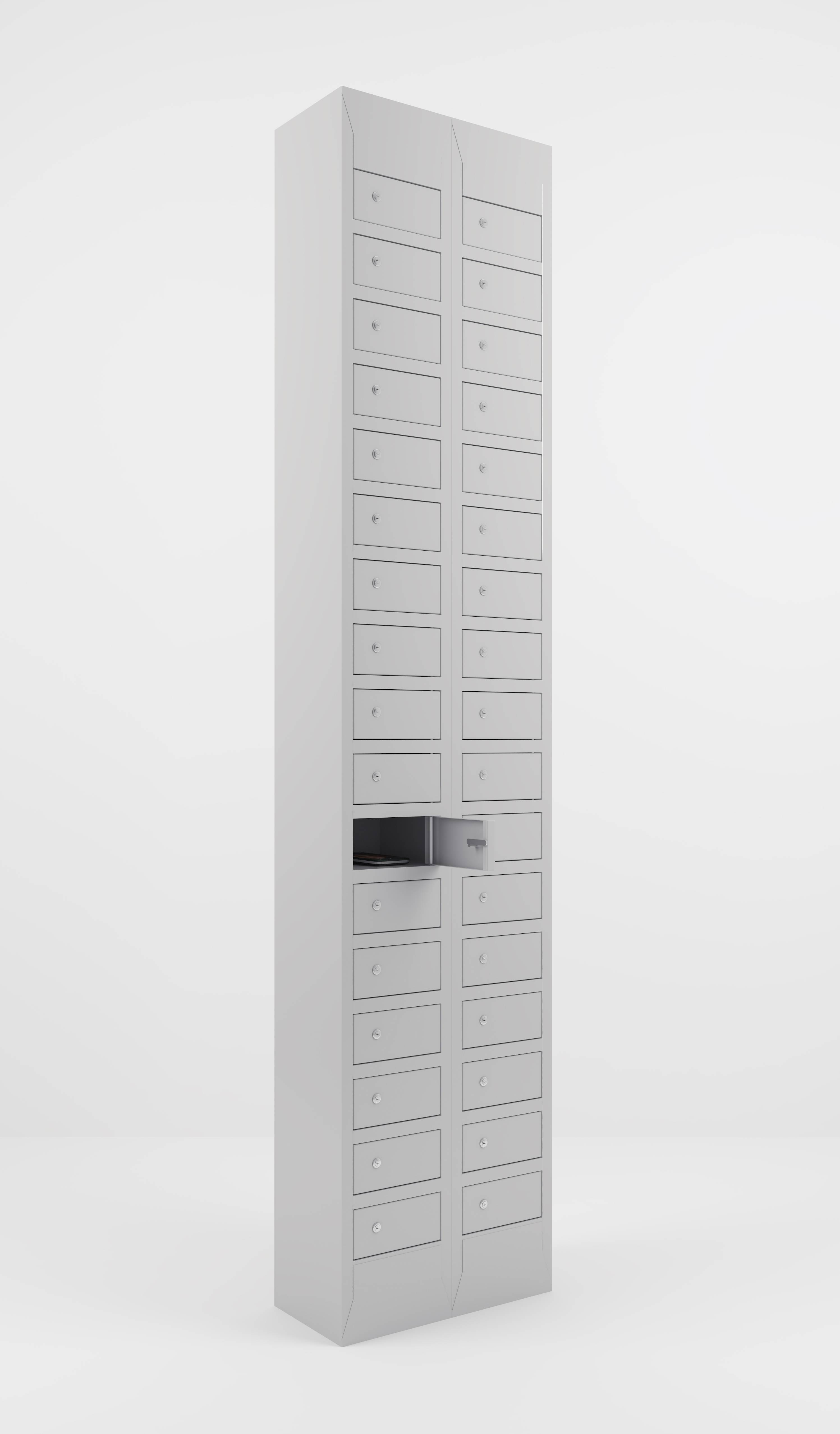 Параметры ячеек, мм – 76х160х200 – эти габариты позволяют разместить в боксе до восьми смартфонов;