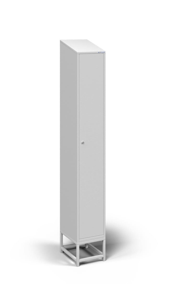Компактный закрытый шкаф для хранения противогазов, оснащённый прочной подставкой и выполненный в едином стиле. Подходит для размещения в коридорах, на постах или в служебных помещениях. Прямые перегородки обеспечивают чёткое разделение ячеек и удобство учёта СИЗ.