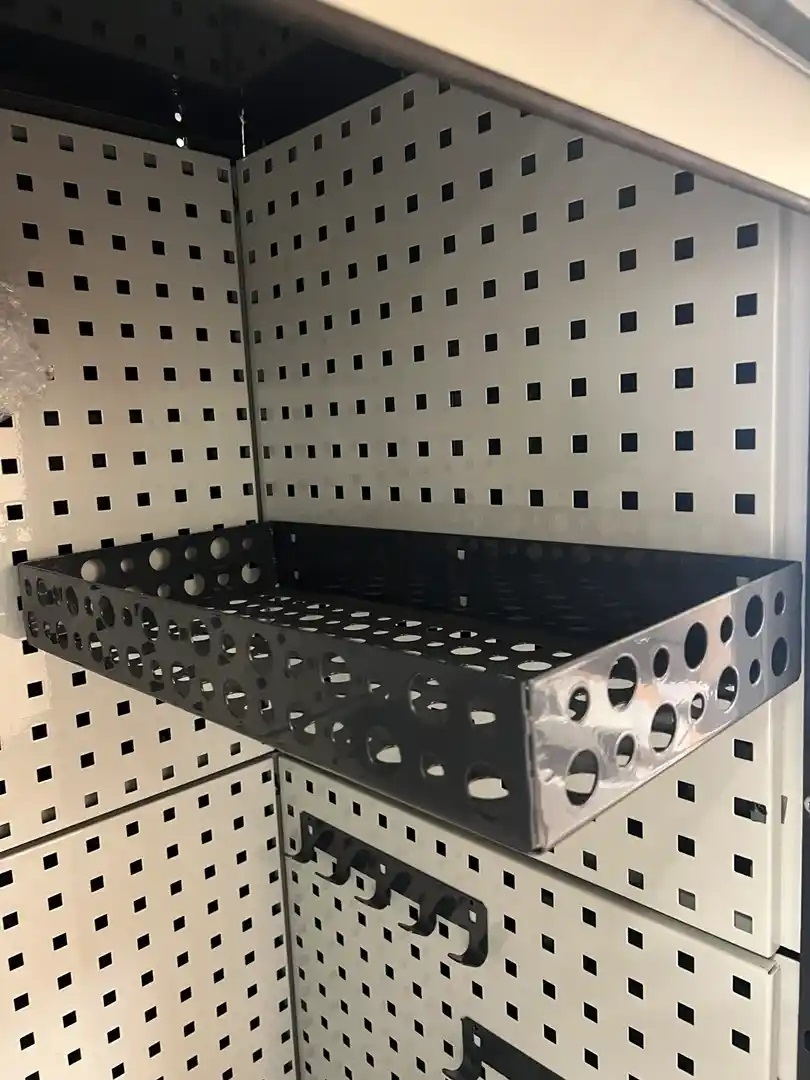 Предназначены для хранения лёгких вещей, устанавливаются на перфорированные профили и панели.