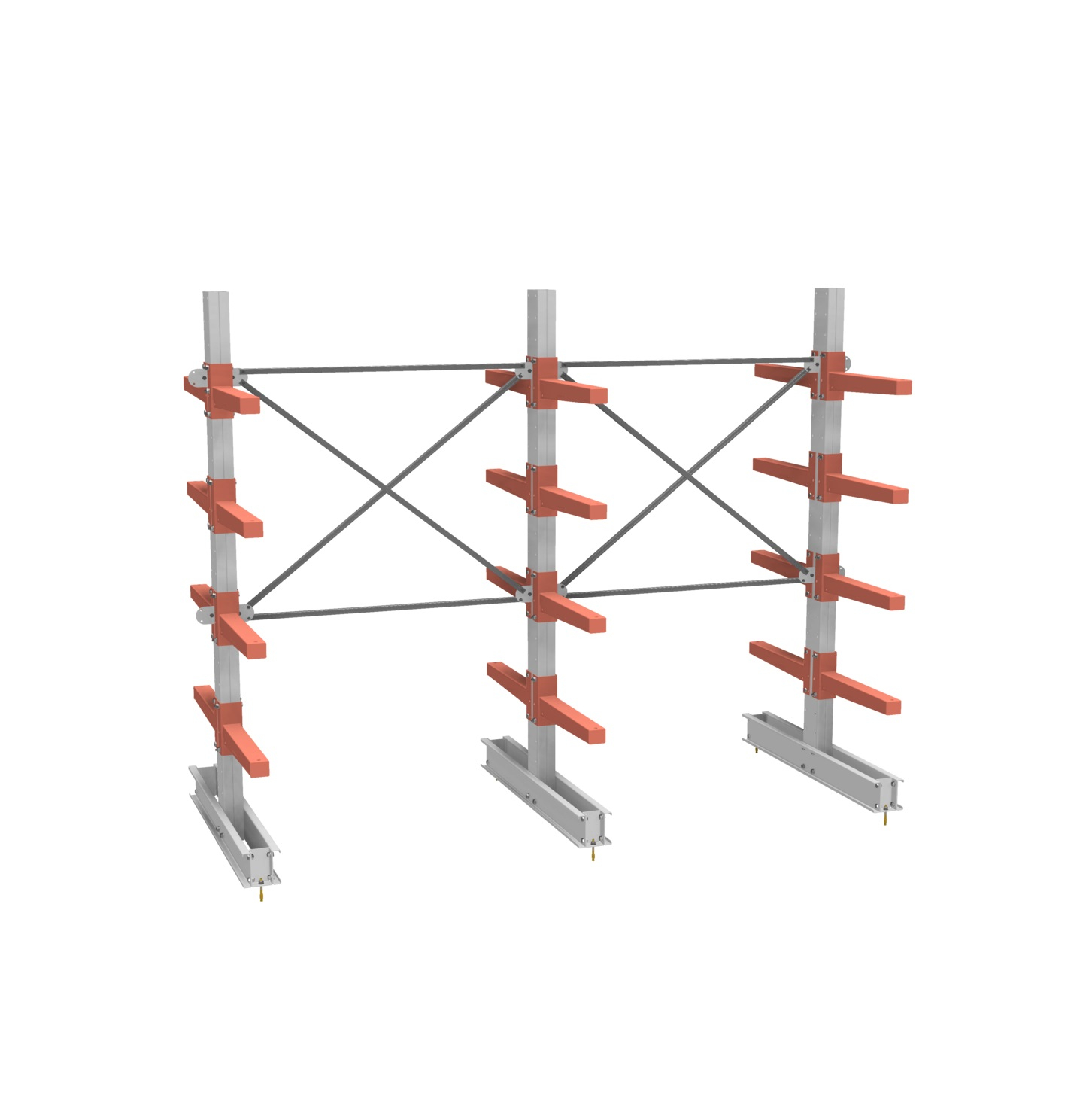 Консольные стеллажи для склада предназначены для хранения длинномерных грузов. Продуманная конструкция позволяет загружать продукцию как с лицевой (односторонний стеллаж), так и с обратной стороны стеллажа (двухсторонний стеллаж). Консоли могут крепиться на разной высоте с шагом 100 мм, горизонтально или под наклоном.