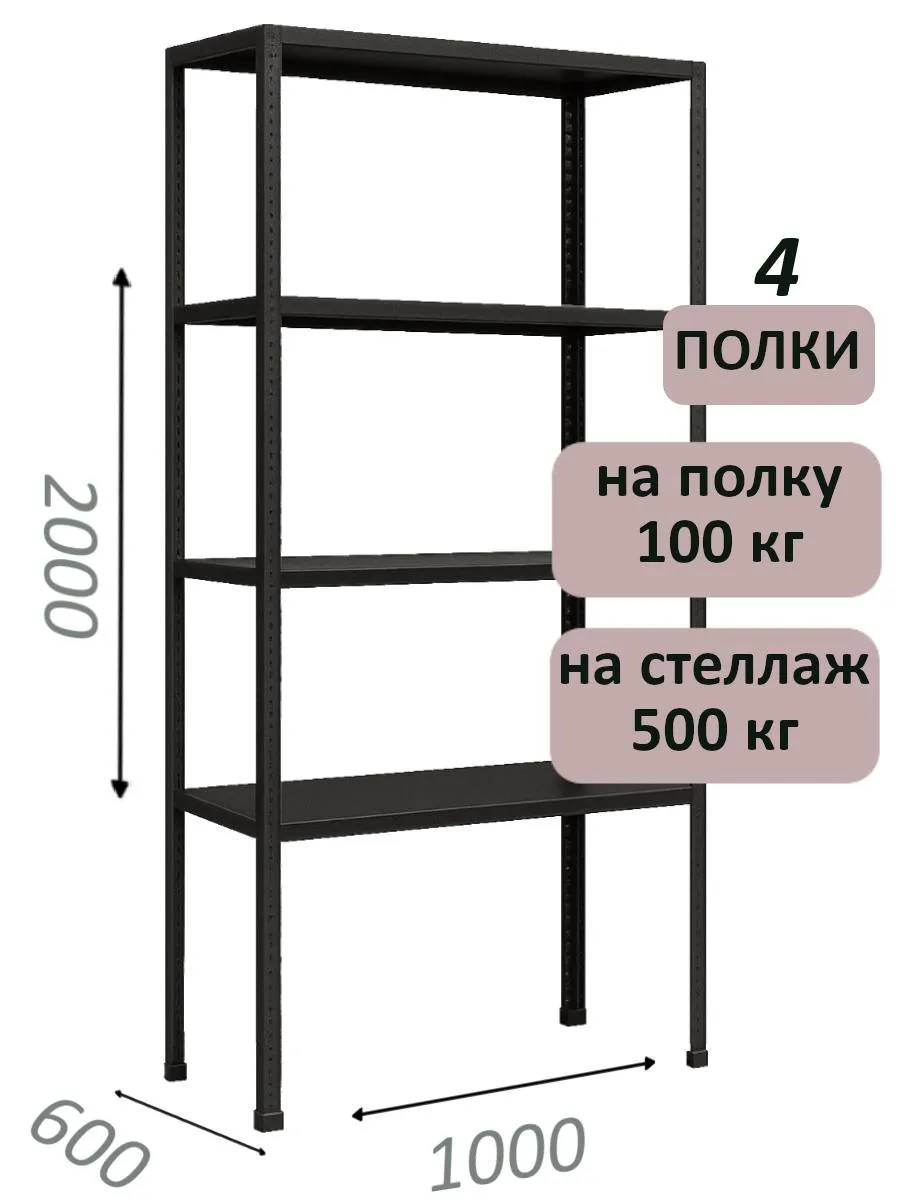 Стеллаж MS Standart 200х100х60, 4 полки, чёрный