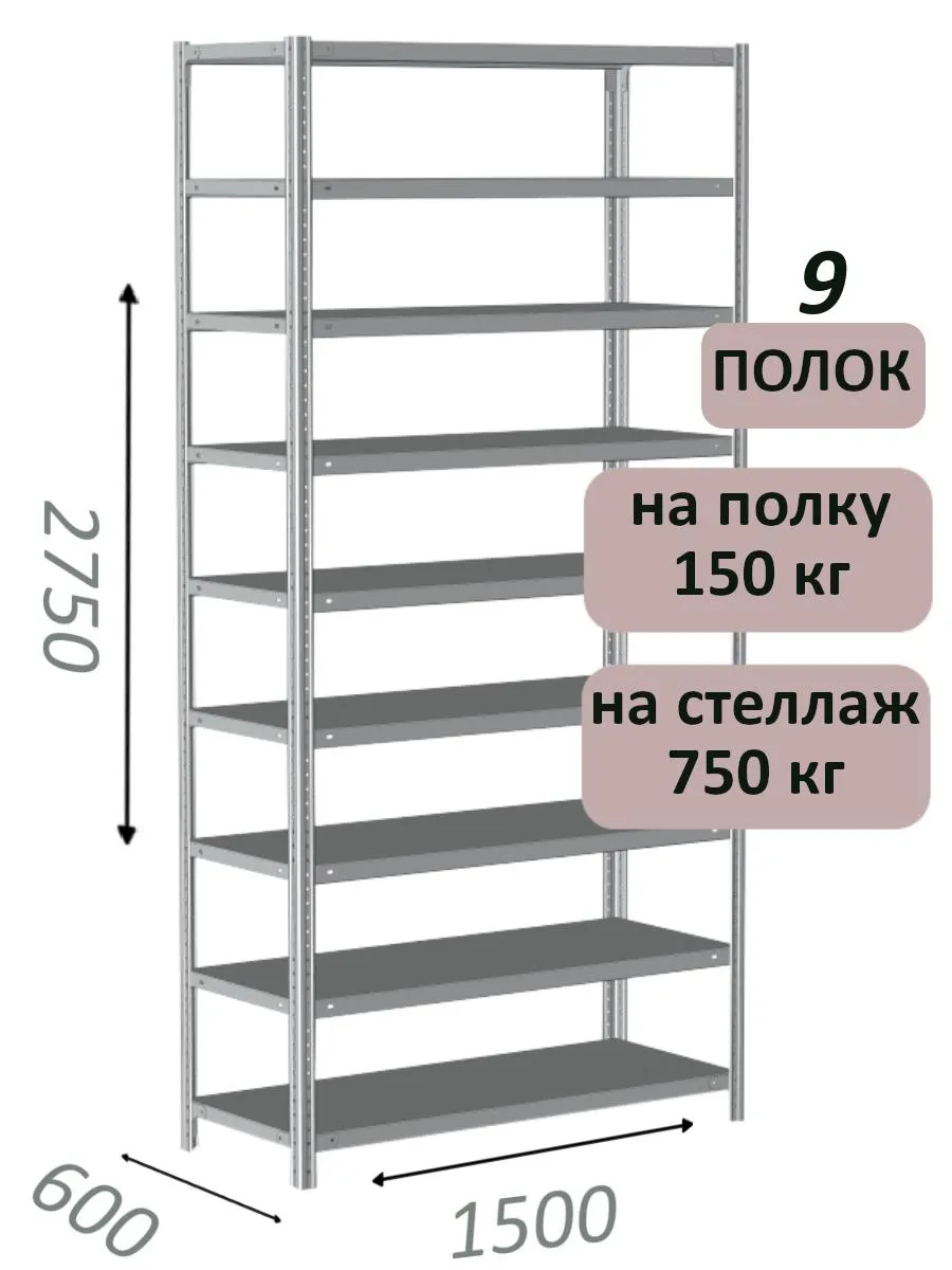 Стеллаж MS Strong 275х150х60, 9 полок