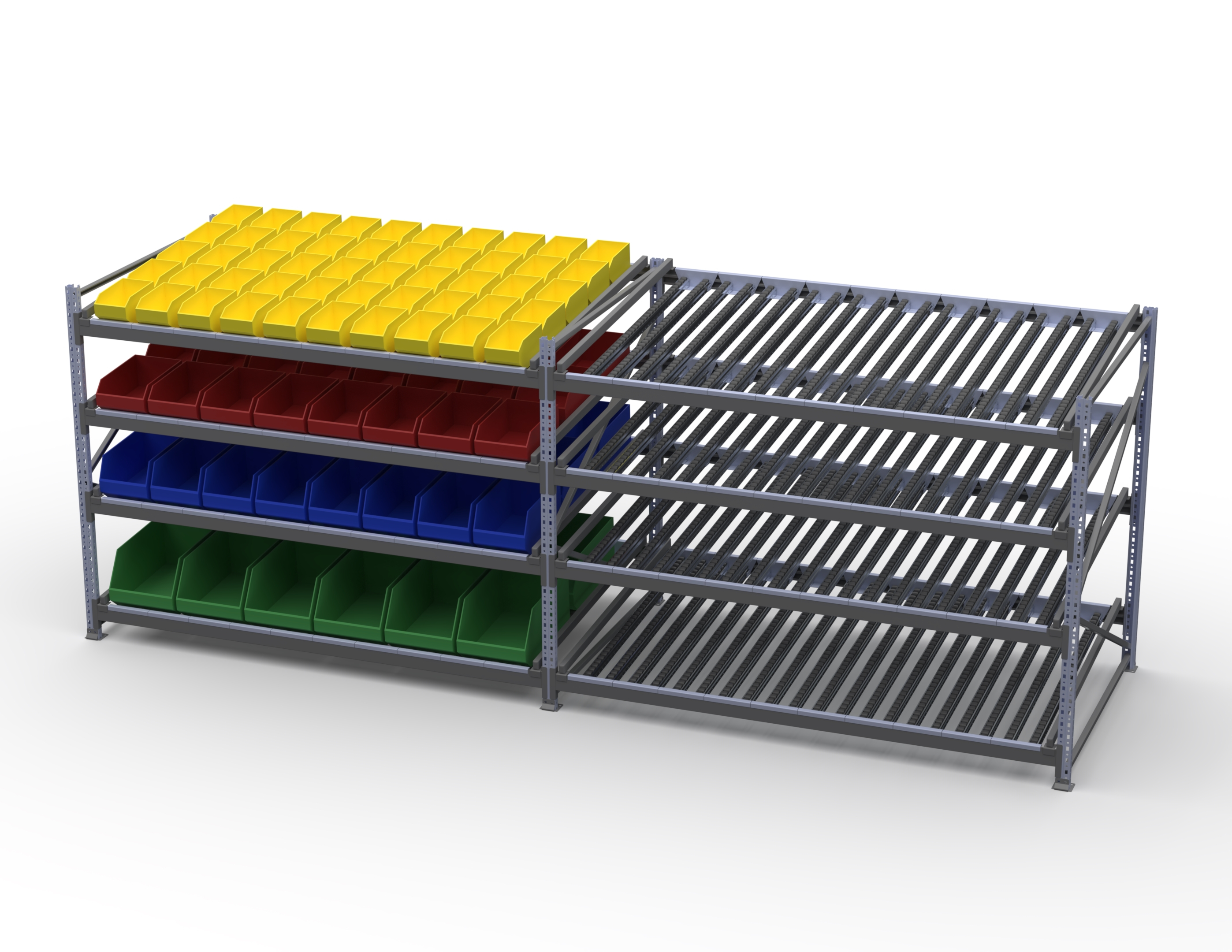 Гравитационные полки на фронтальные стеллажи — ускорение подбора штучных заказов