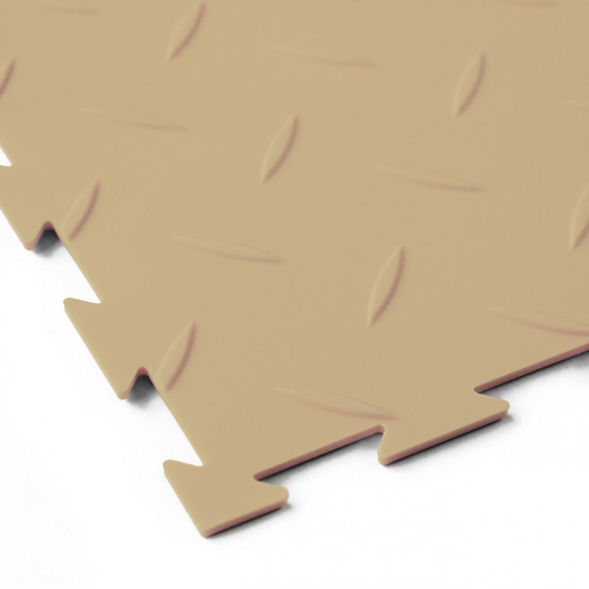 Бывает двух видов: 5 и 7 мм. 5-миллиметровое покрытие применяется чаще в офисах или раздевалках спортивных залов, то есть там, где нагрузка на напольное покрытие минимальна. ПВХ плитки толщиной 7 мм рекомендуется применять в тех случаях, когда ожидается движение техники или большая проходимость, это зачастую склады с автопогрузчиками, гаражные комплексы и т. д. При этом желательно закрепить модули на поверхности с помощью ПВХ клея.