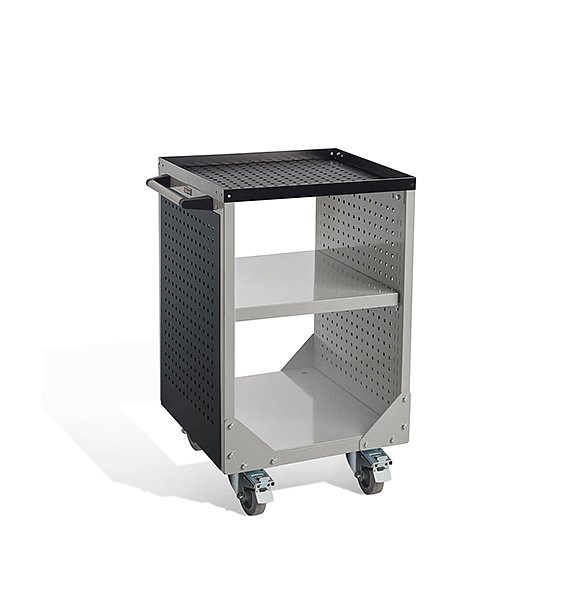 Боковые стенки представляют собой двойные перфорированные экраны. С внешней стороны тележки на них можно установить аксессуары к экранам — лотки, держатели инструмента и т.д. Между экранами установлена ВС полка. Максимальная нагрузка на полку — 200 кг.