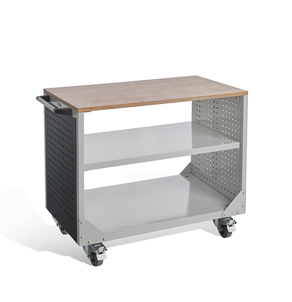 Боковые стенки представляют собой двойные перфорированные экраны. С внешней стороны тележки на них можно установить аксессуары к экранам — лотки, держатели инструмента и т.д. Между экранами установлена ВС полка. Максимальная нагрузка на полку — 200 кг.