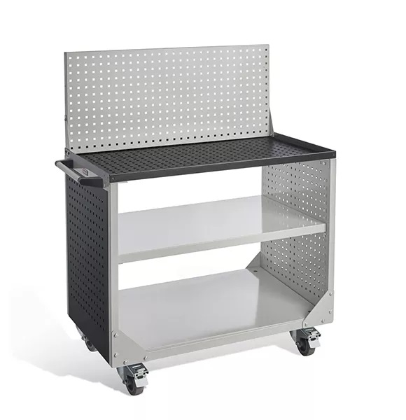 Боковые стенки представляют собой двойные перфорированные экраны. С внешней стороны тележки на них можно установить аксессуары к экранам — лотки, держатели инструмента и т.д. Между экранами установлена ВС полка. Максимальная нагрузка на полку — 200 кг.