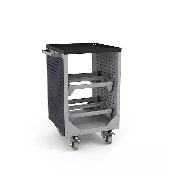 Боковые стенки представляют собой двойные перфорированные экраны. С внешней стороны тележки на них можно установить аксессуары к экранам — лотки, держатели инструмента и т.д. Между экранами установлены салазки для держателей инструмента. Сами держатели инструмента приобретаются дополнительно.