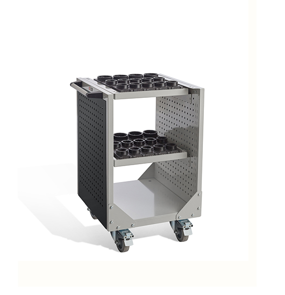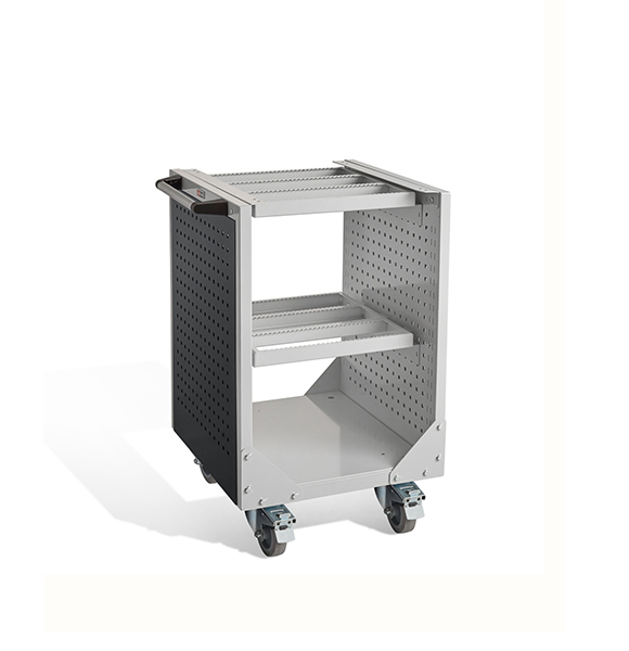 Боковые стенки представляют собой двойные перфорированные экраны. С внешней стороны тележки на них можно установить аксессуары к экранам — лотки, держатели инструмента и т.д. Между экранами установлены салазки для держателей инструмента. Сами держатели приобретаются отдельно.