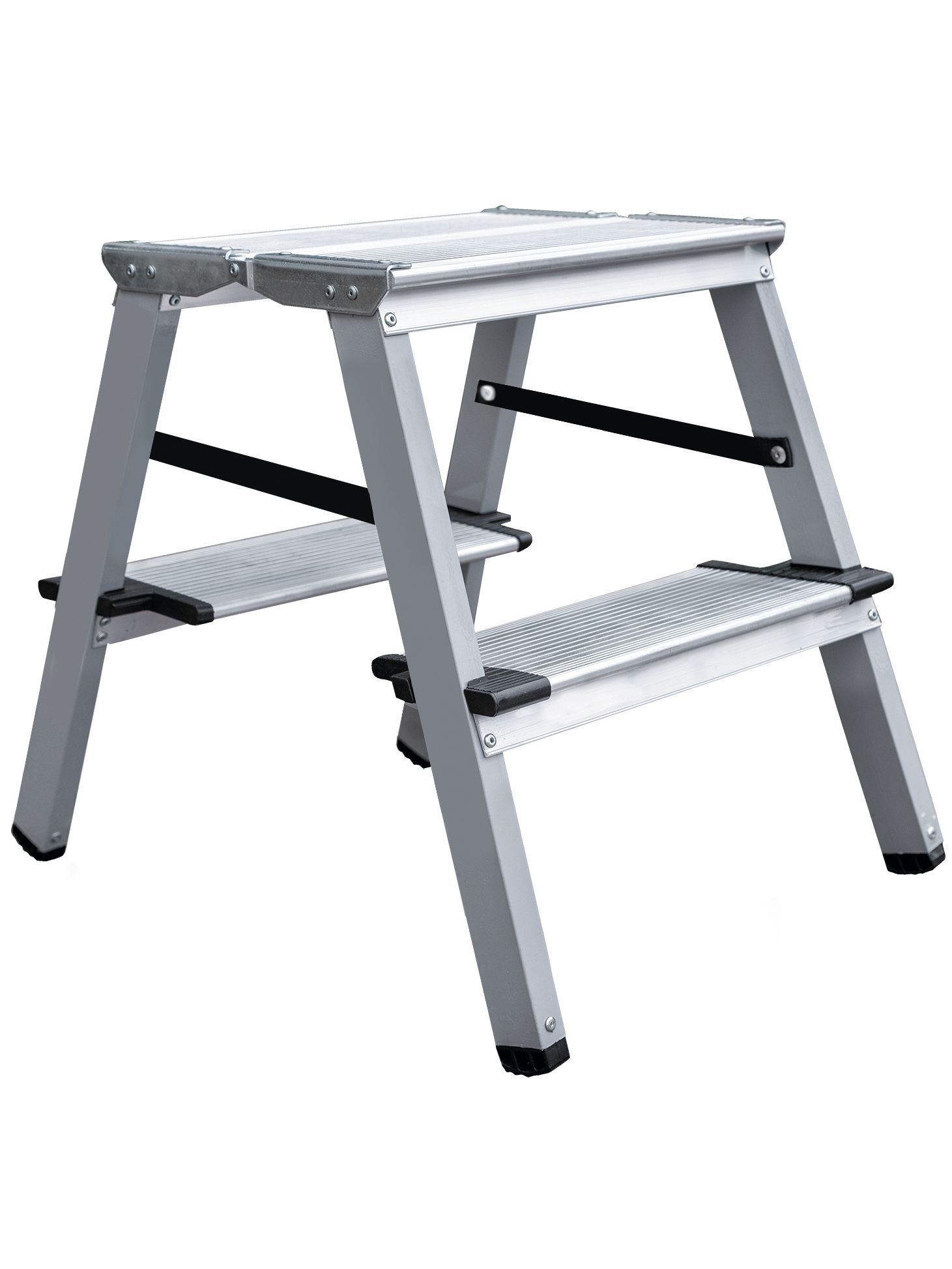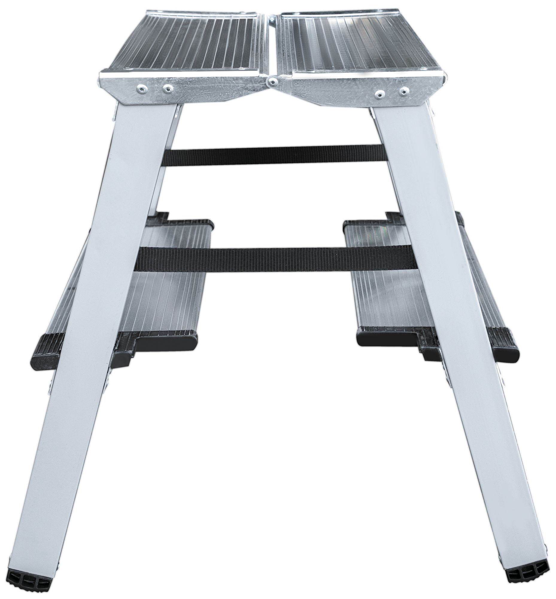 Стремянка двухсторонняя стальная с алюминиевыми ступенями 130 мм и площадкой 350х260 мм NV1147.2
