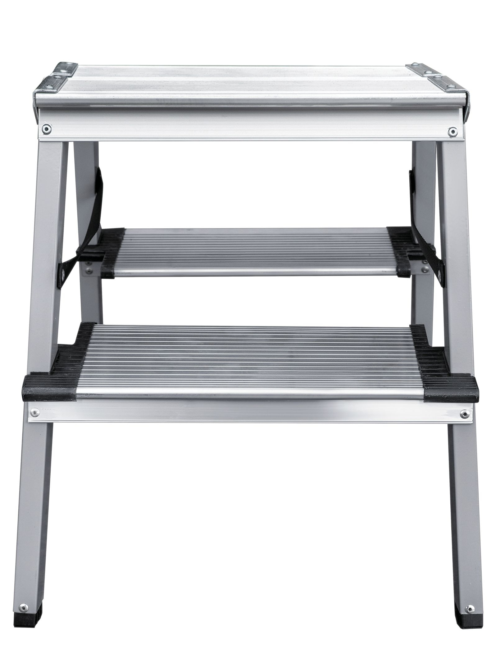 - Алюминиевая складная площадка 350×160 мм из 2 ступеней. Удобно ставить инвентарь.