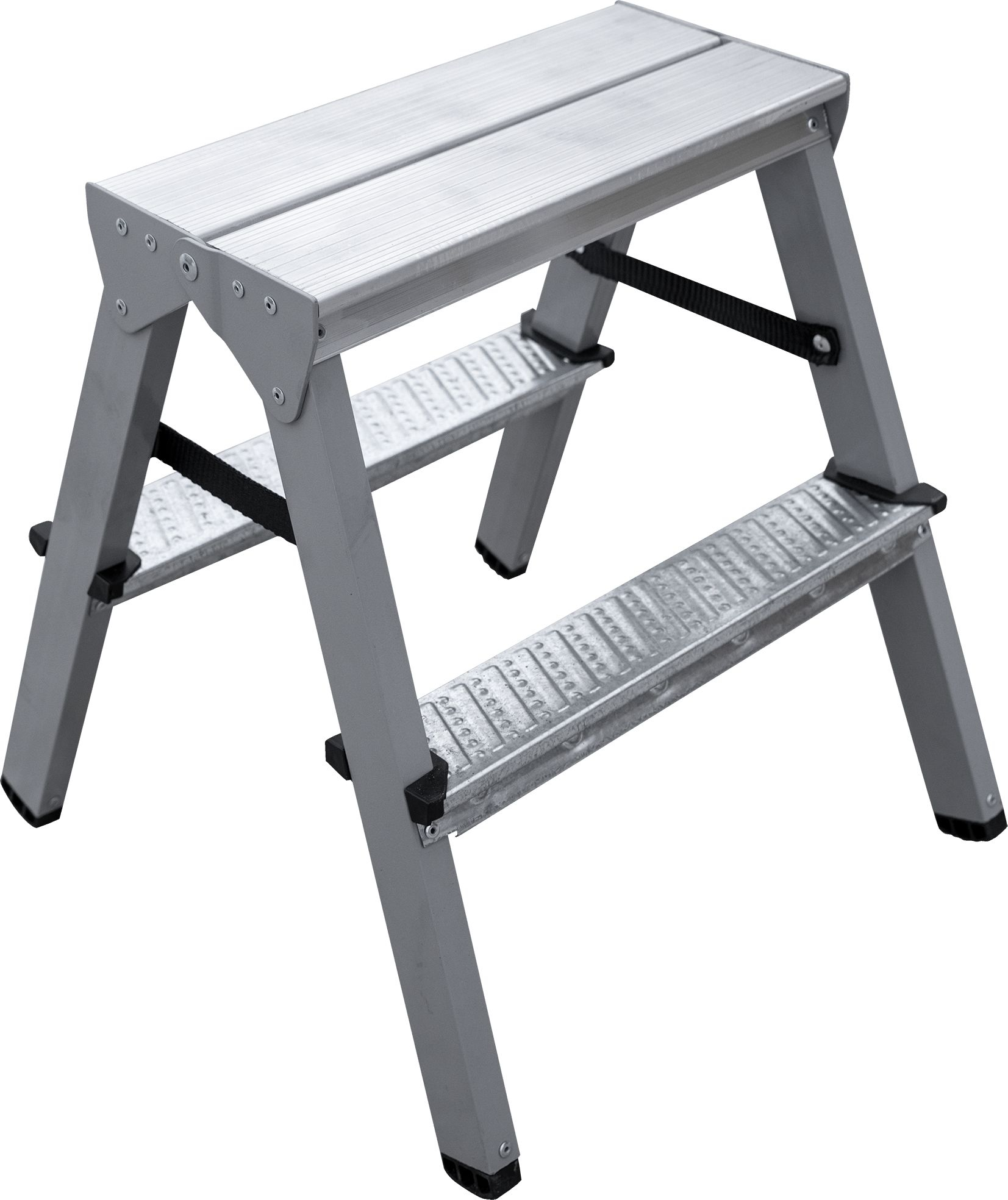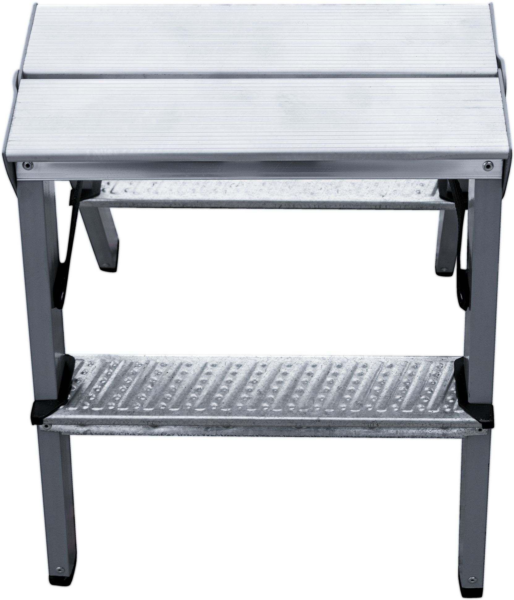 - Алюминиевая складная площадка 350×160 мм из 2 ступеней. Удобно ставить инвентарь.
