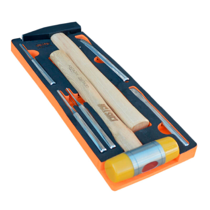 Набор ударного инструмента (молотоки, зубила, выколотки) в ложементе VCS 1/4. Набор включает в себя 10 предметов.