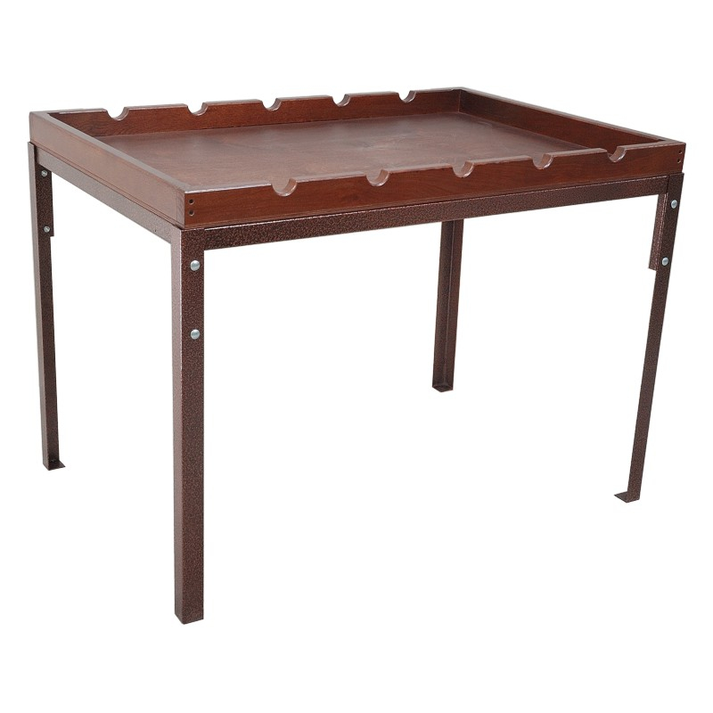 Стол предназначен для проведения регламентных работ с оружием. Столешница выполнена из влагостойкой фанеры или МДФ толщиной 10 мм и оборудована деревянной отбортовкой с пазами для комфортной работы с огнестрельным оружием.
