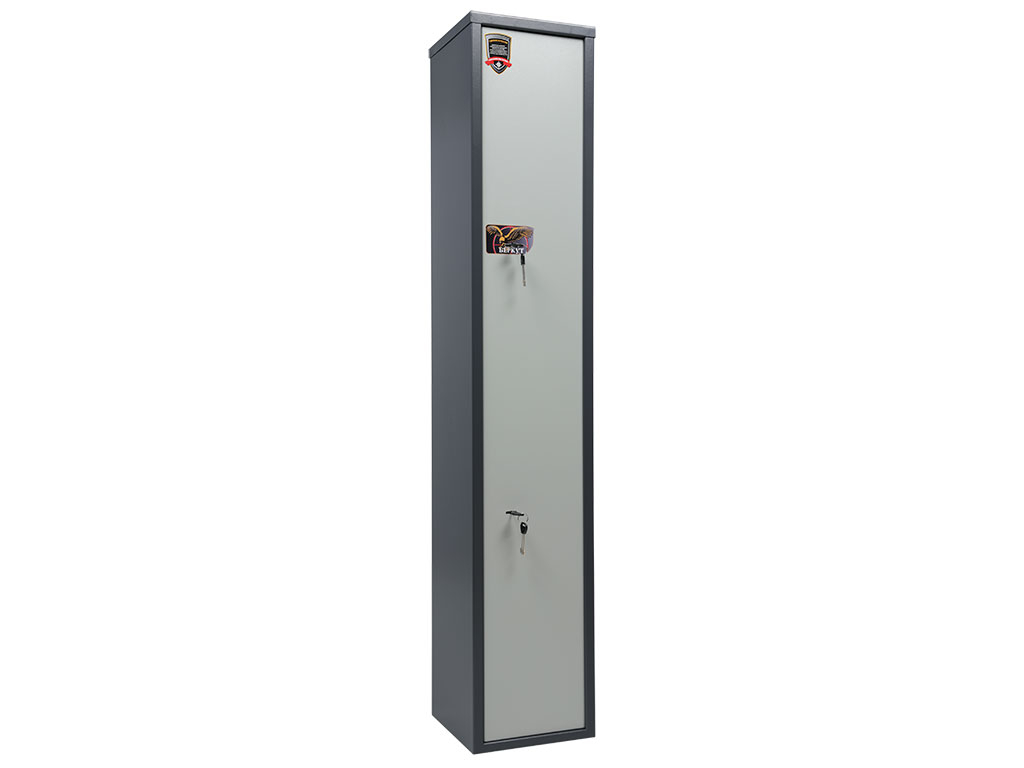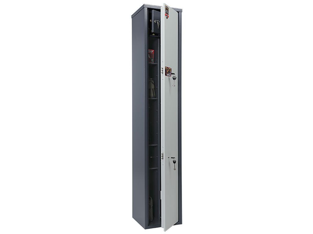 Толщина металла корпуса и двери – 2 мм оборудованы патронным отделением, запирающимся на ключ, полками и ложементами для ружей