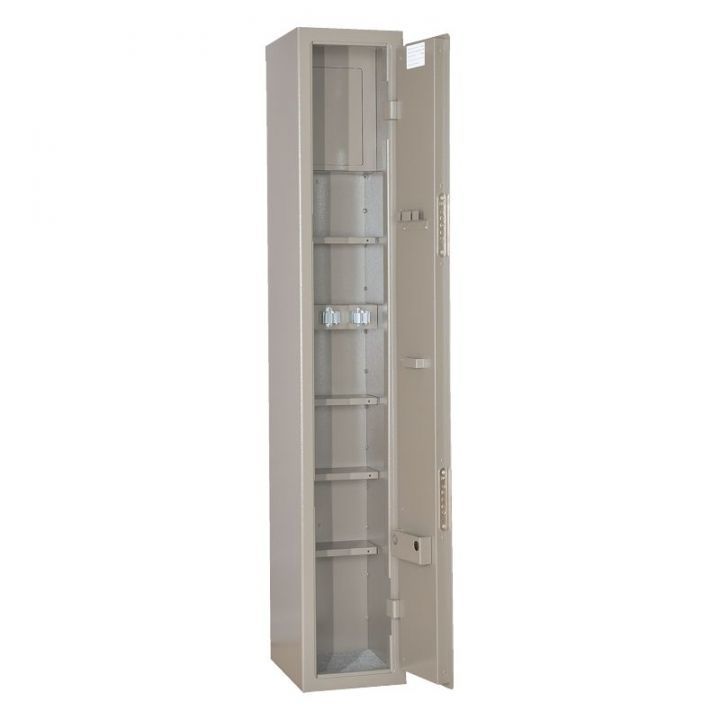 Сейф односекционный, на 3 ствола оснащен тремя съемными полками и отделением под патроны. Максимальная высота устанавливаемого оружия — 1350 мм. Ложементы — металлические держатели с резиновыми роликами. Два замка ЗАО «Про-Сам» г. Рязань или аналогичные замки другого производителя.