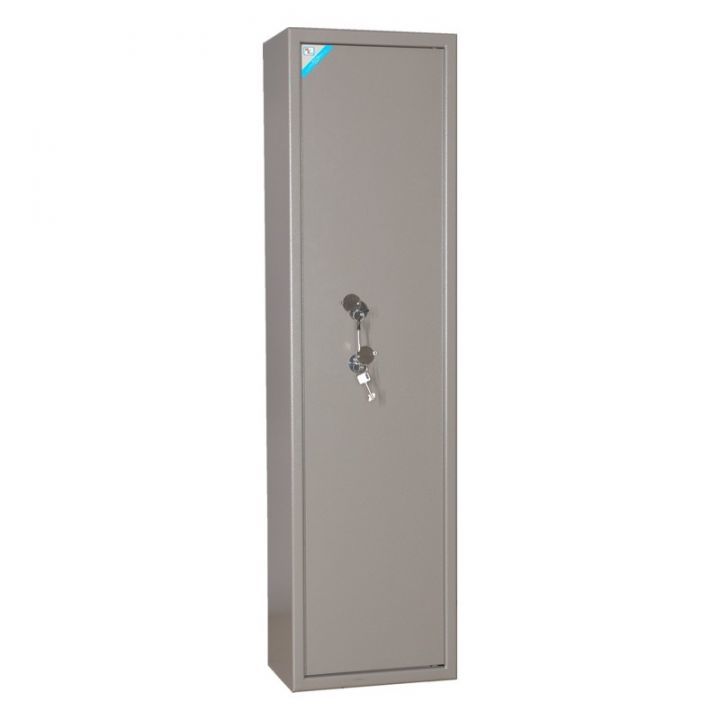 Сейф односекционный оснащен тремя съемными полками и отделением под патроны. Комплектуется роликовыми ложементами. Максимальная высота устанавливаемого оружия — 1350 мм. В двери установлены 2 ключевых 8-ми сувальдных замка с ригельной системой запирания в 3 стороны. Диаметр ригеля 20 мм. Второй замок ЗАО «Про-Сам» г. Рязань или аналогичный замок другого производителя.
