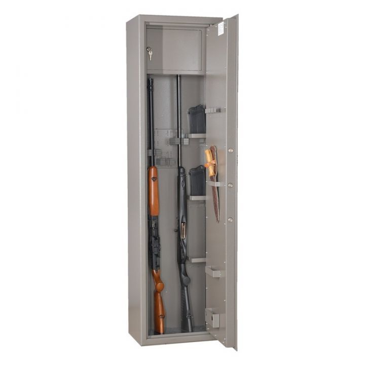 Шкаф односекционный оснащен съемными полками и отделением под патроны.