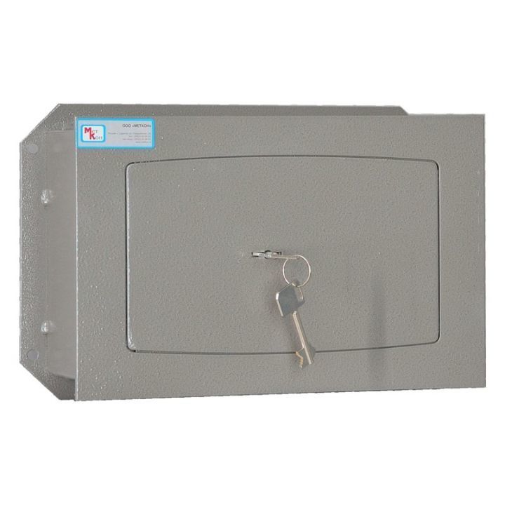 Дверь шкафа оснащена сейфовым замком сувальдного типа. Корпус сейфа толщиной 2 мм, лицевая панель и дверь толщиной 5 мм. На задней стенке корпуса расположены отверстия для крепления.