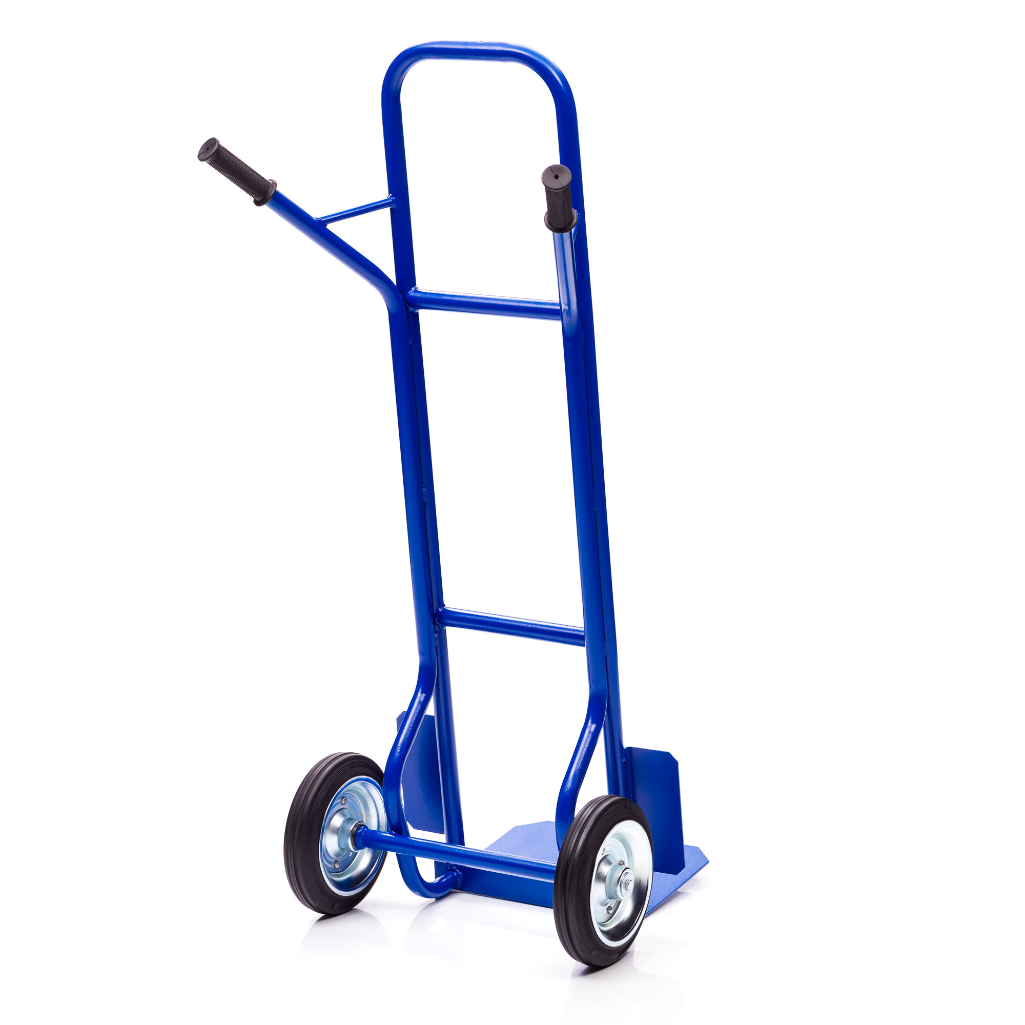 Грузовая 2-х колесная тележка КГ-250 предназначена для перевозки грузов весом до 250кг. Надежная металлическая, цельносварная конструкция тележки изготовлена из трубы круглого сечения. Диаметр трубы 30мм., толщина металла 1,5мм. Ручки выполнены из трубы диаметром 28мм., толщиной 1,5мм. и оснащены резиновыми наконечниками для удобной работы в складских помещениях, на производстве, а также в бытовых целях. Грузовая площадка размером 350х250мм. обеспечивает устойчивое и надежное положение груза при транспортировке. Площадка выполнена из листа металла толщиной 4мм., что позволяет перевозить грузы весом до 250кг. При помощи удобных ручек можно легко изменять направление движения грузовой 2-х колесной тележки КГ–250 при перевозке груза. Покрытие полимерное. Цвет синий, шагрень. Основные преимущества Тележки КГ-250: прочная металлическая конструкция, грузоподъемность до 250кг., небольшой вес, малые габариты, удобные прорезиненные ручки, устойчивость и маневренность выгодно отличают её от других аналогов.
