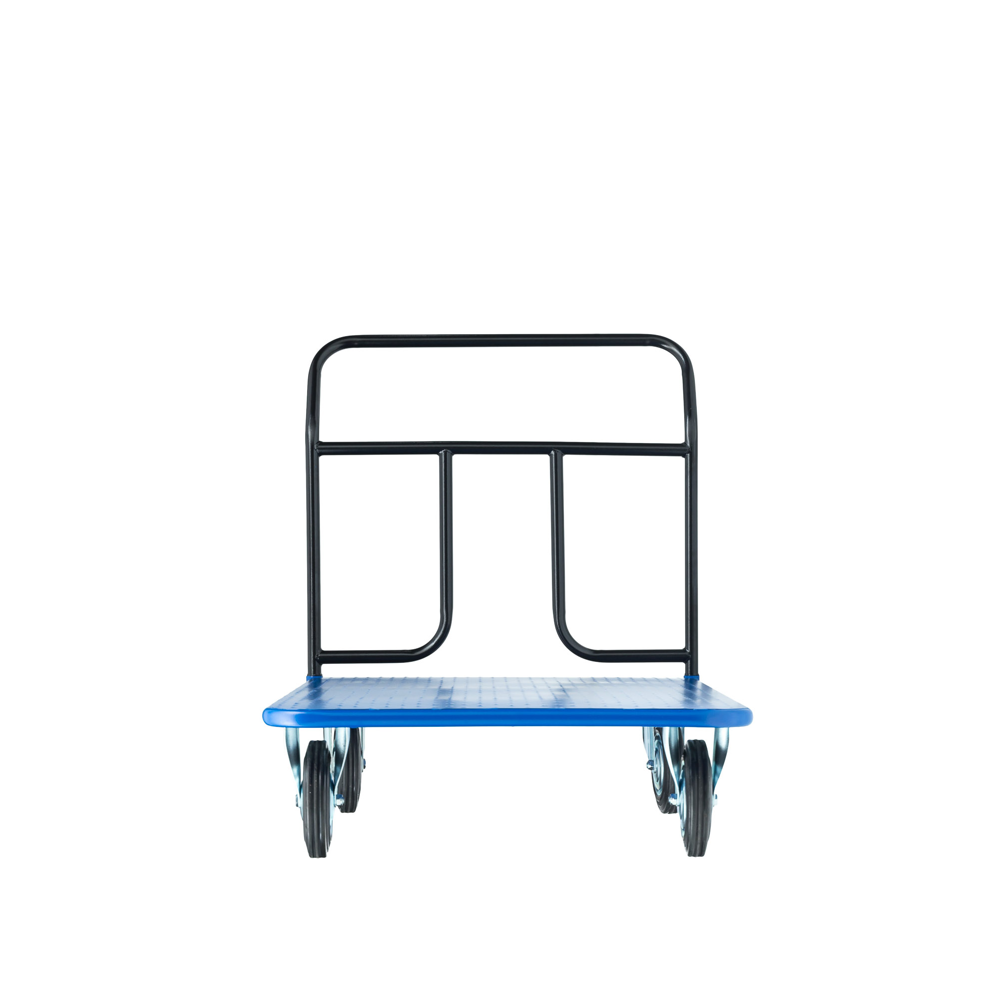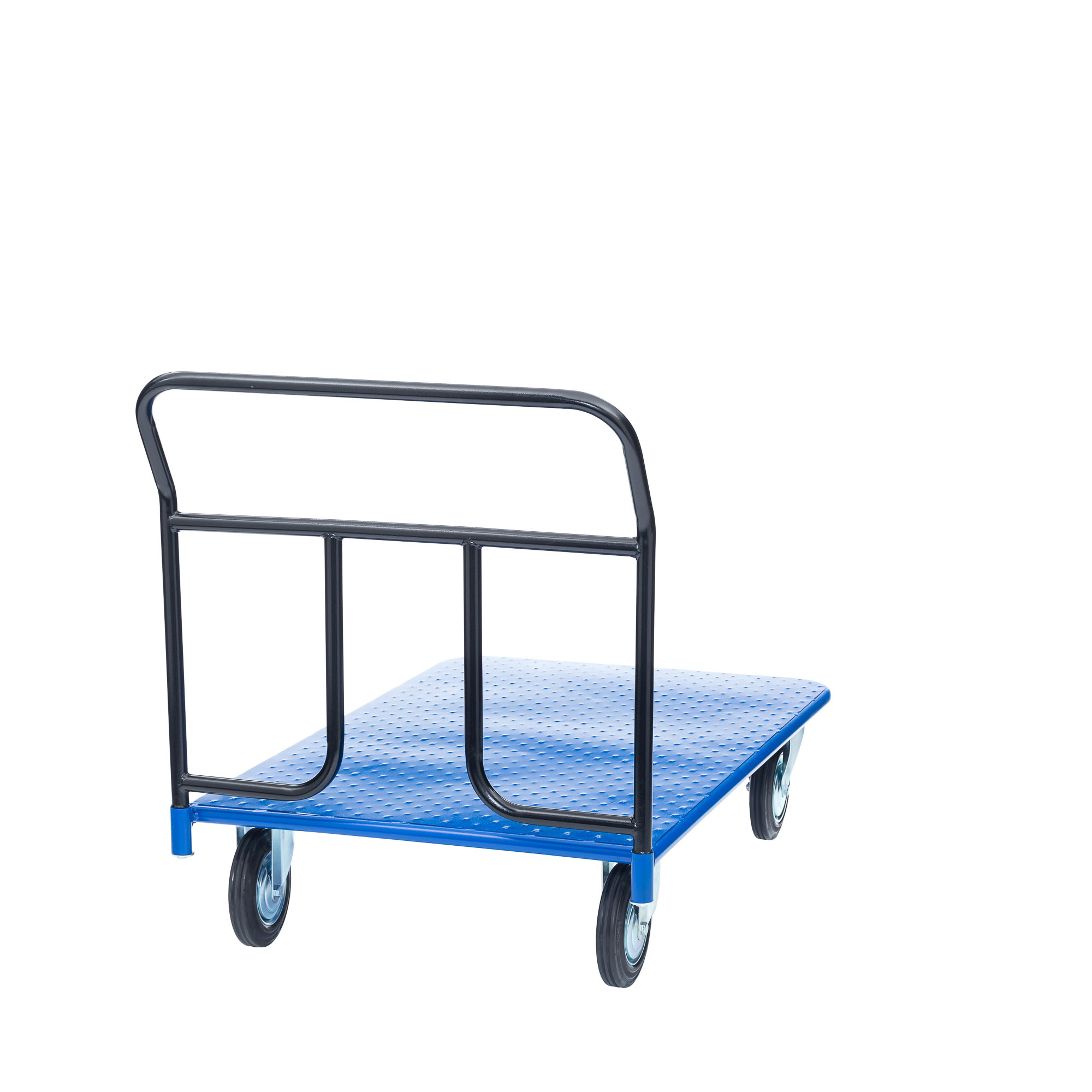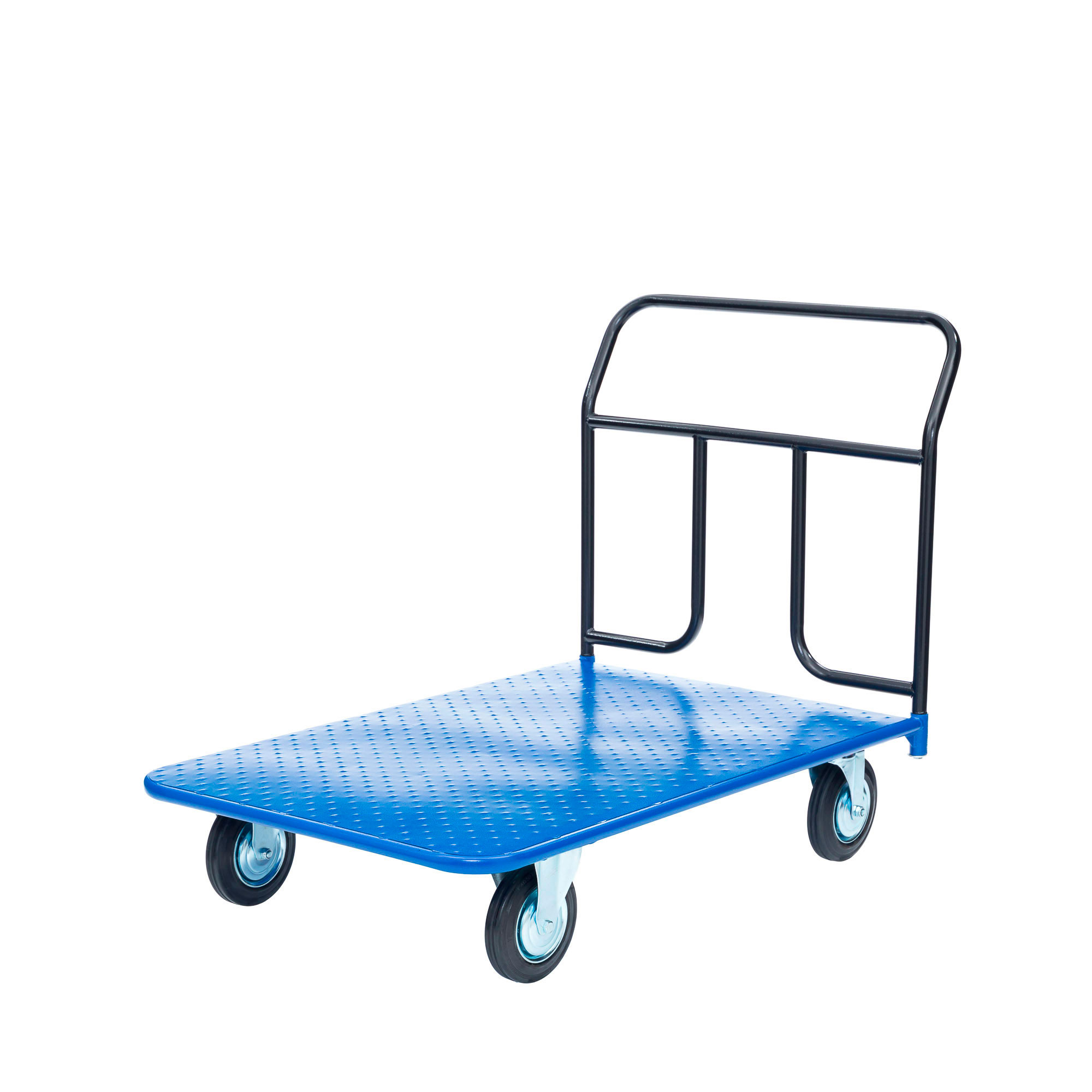 Платформенная 4-х колесная тележка КП-450 (700х1250) используется для перемещения различных грузов в складских помещениях. Ручка крепится к платформе болтами, для компактного хранения можно снять, высота ручки 750мм. Платформа имеет уникальную рельефную, полимерную, противоскользящую поверхность. Цвет синий, шагрень. Для легкого перемещения тележка КП-450 комплектуется 2 поворотными и 2 неповоротными колесами, изготовленными из высококачественной литой резины.