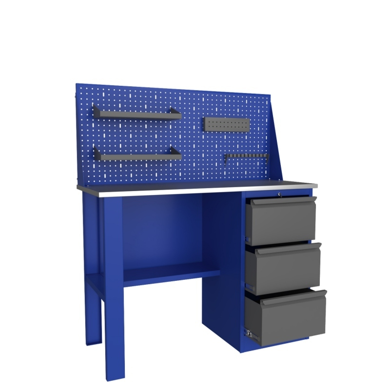 тумбой, которая имеет 3 ящика внутри – складировать инструменты будет удобно;