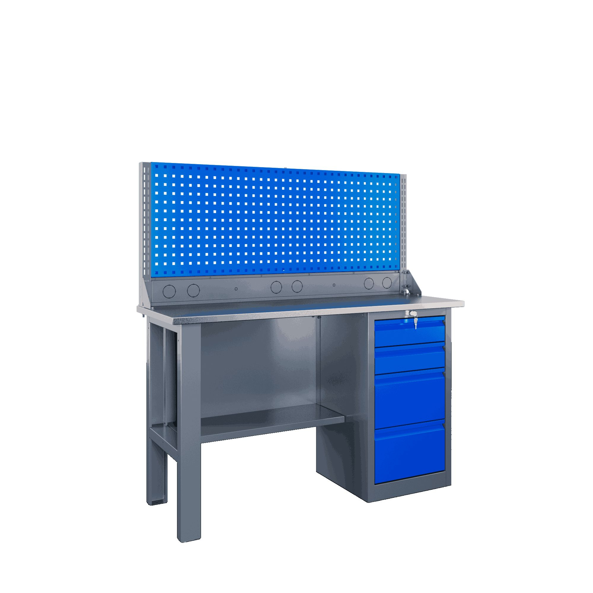 Самые компактные верстаки с глубиной столешницы 500 мм. Благодаря небольшой глубине, такие верстаки легко размещаются в ограниченных пространствах, например, в гаражах, мастерских и тд. Несмотря на компактные размеры, верстаки могут быть оснащены полками, ящиками и держателями для инструментов, что помогает поддерживать порядок и быстро находить нужные предметы.