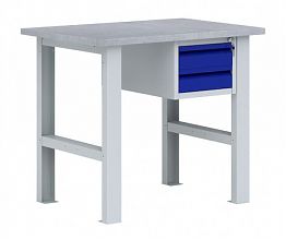 Верстак металлический двухтумбовый с тумбой и драйвером. Состоит из отдельных модулей: