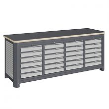 Модуль верстака выполнен сварными. Ящики в модулях устанавливаются на шариковых телескопических направляющих полного выдвижения.