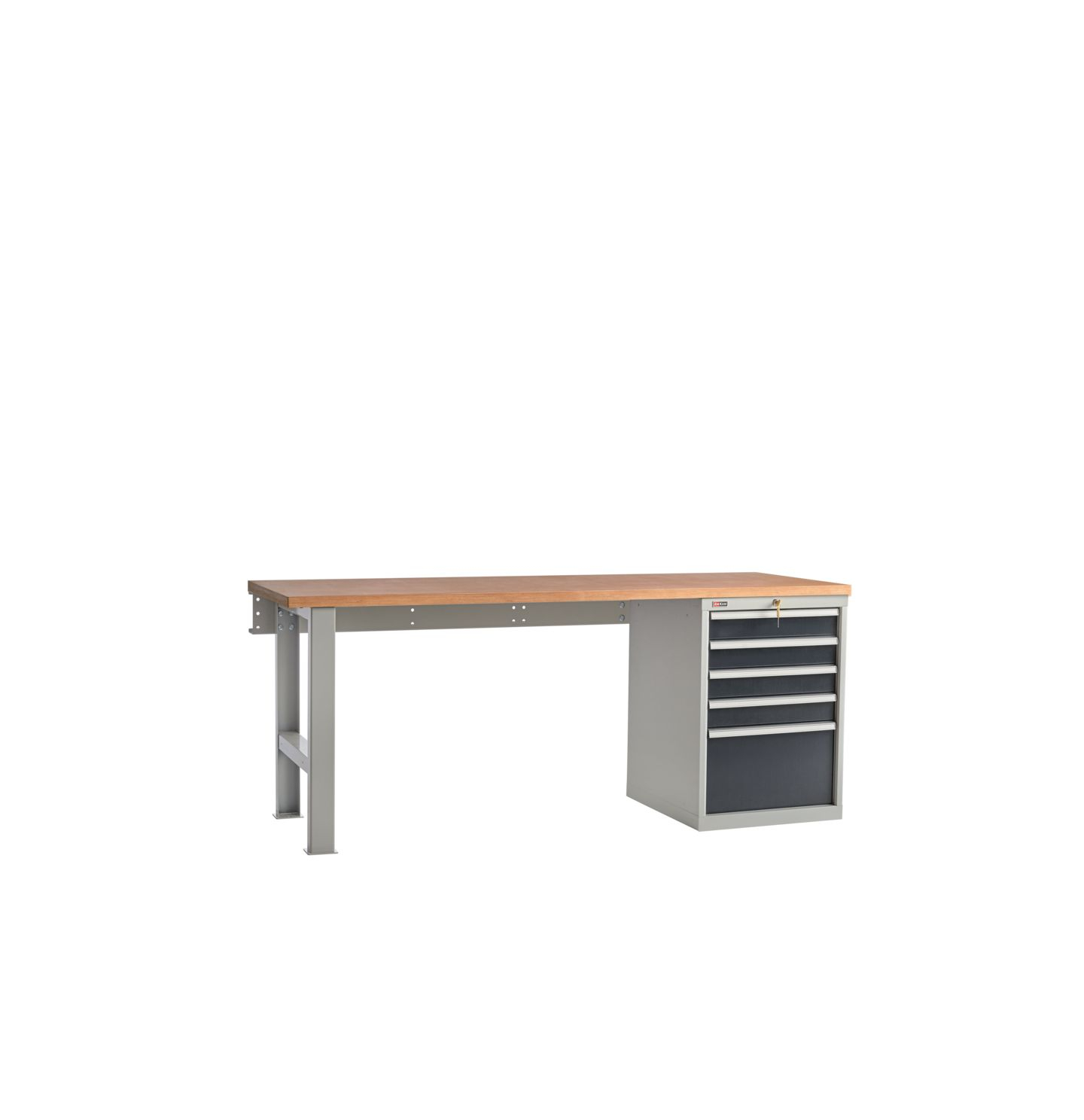Металлические элементы верстаков окрашены эпоксидной порошковой краской, устойчивой к механическим воздействиям и агрессивным жидкостям. Ящики, дверцы тумб и стойки экрана – цвет антрацитово-серый RAL 7016, остальные элементы – цвет серый RAL 7038.